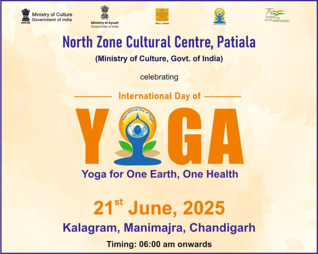उत्तर क्षेत्र सांस्कृतिक केंद्र, पटियाला संस्कृति मंत्रालय, भारत सरकार 21 जून, 2025 को कलाग्राम, मनीमाजरा, चंडीगढ़ में अंतर्राष्ट्रीय योग दिवस 2025 मनाने जा रही है।