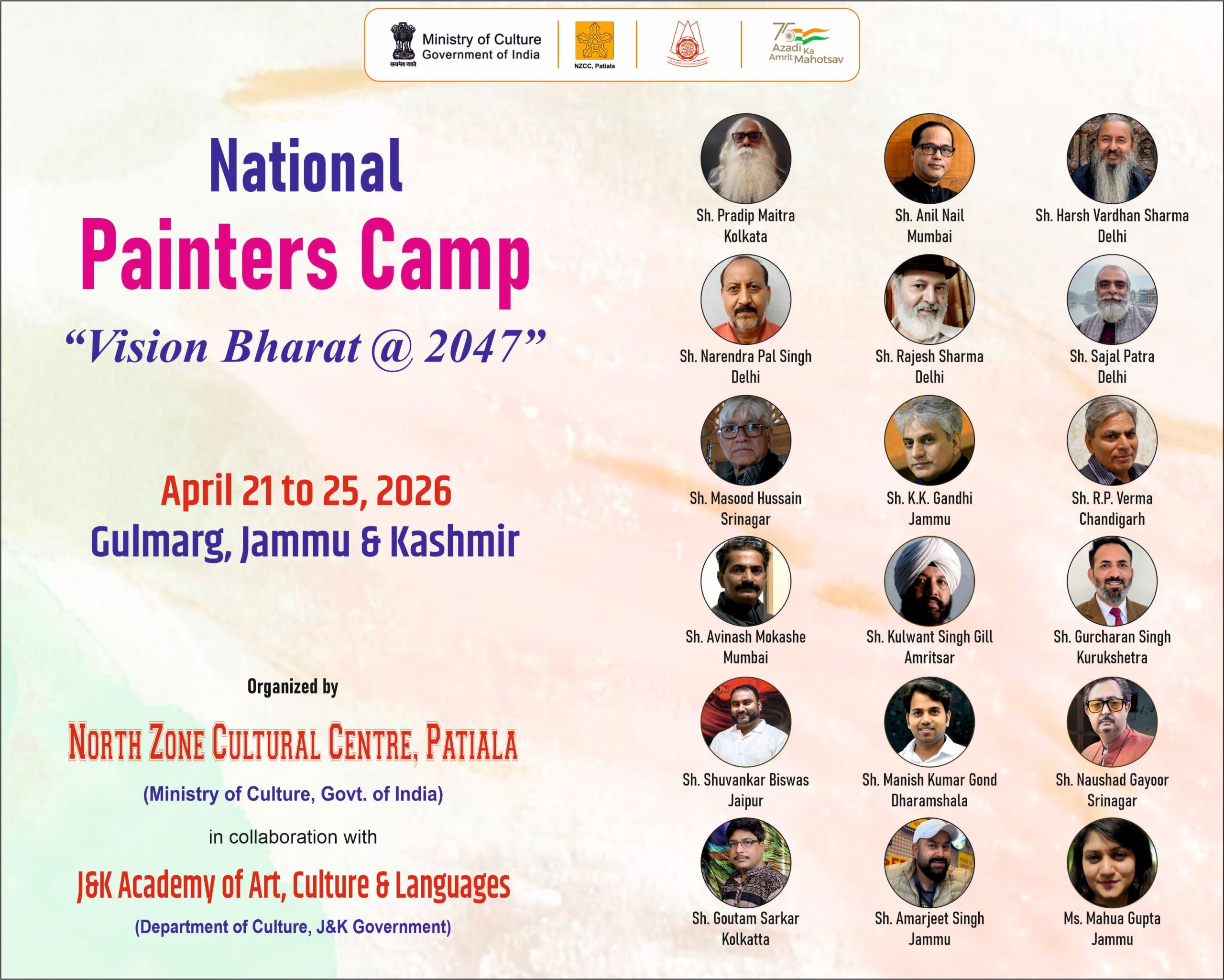 Apr 21, 2026 NZCC आयोजन Comments Off on राष्ट्रीय चित्रकार शिविर का आयोजन जम्मू-कश्मीर के गुलमर्ग में 21 से 25 अप्रैल, 2026 तक